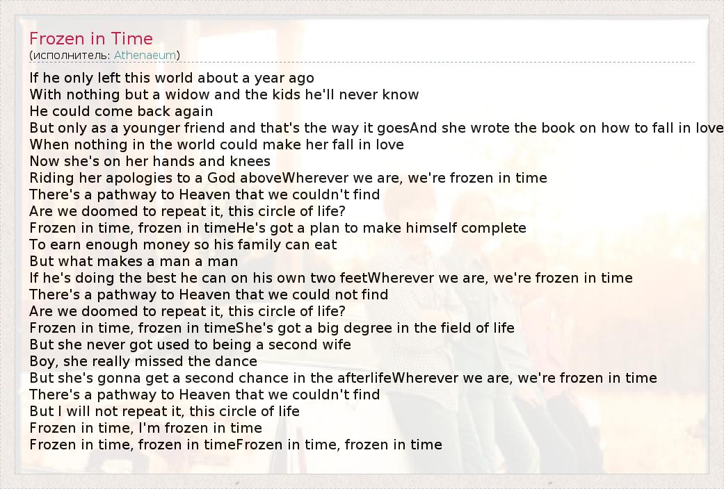 А как ты думаешь, о чем песня "Frozen in Time" ?