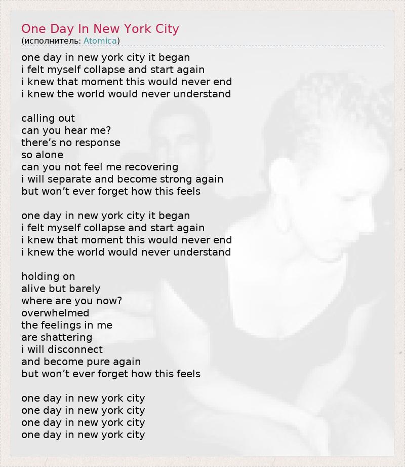 ГлавнаяИсполнителиAtomicaOne Day In New York City