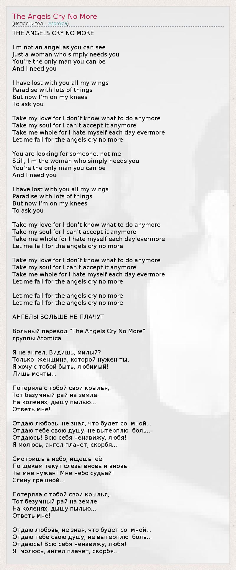 ГлавнаяИсполнителиAtomicaThe Angels Cry No More