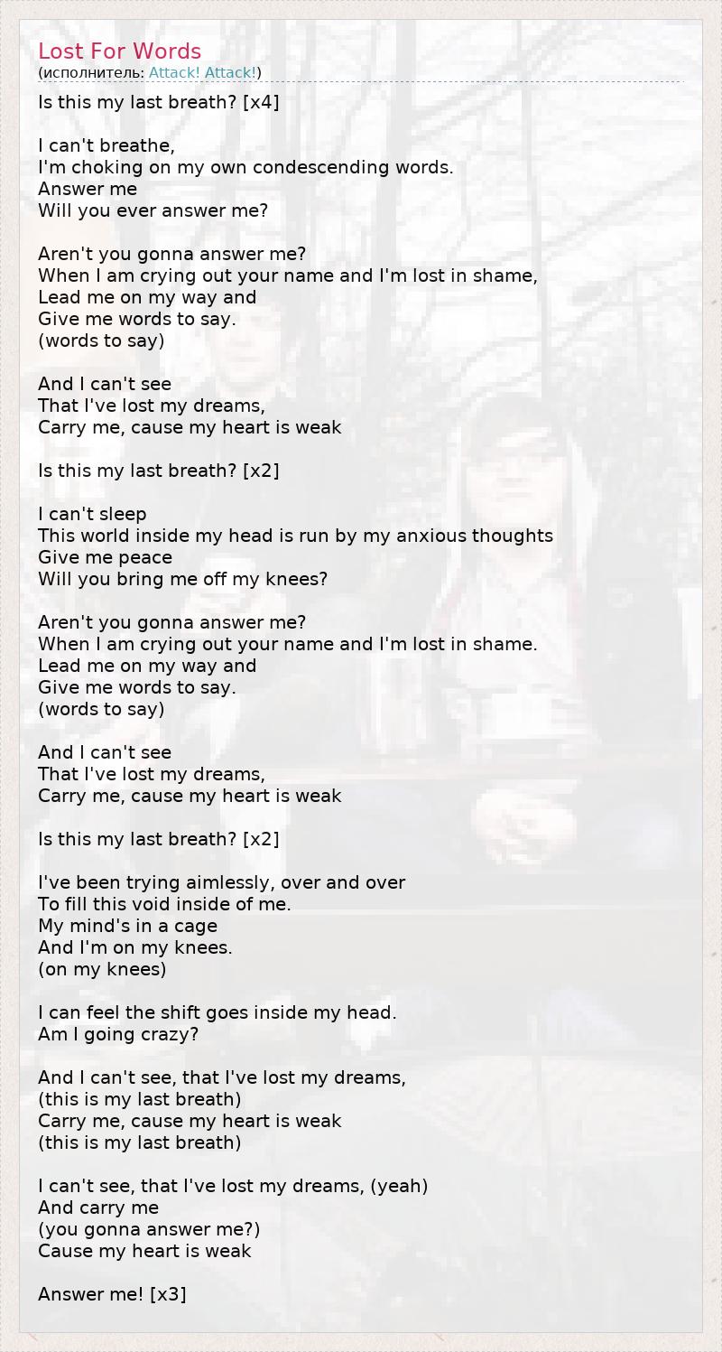 А как ты думаешь, о чем песня "Lost For Words" ?