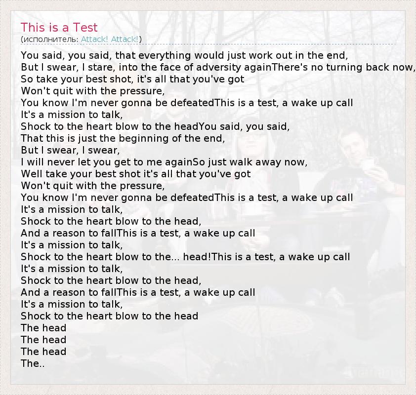 You know I'm never gonna be defeatedThis is a test, a wake up call