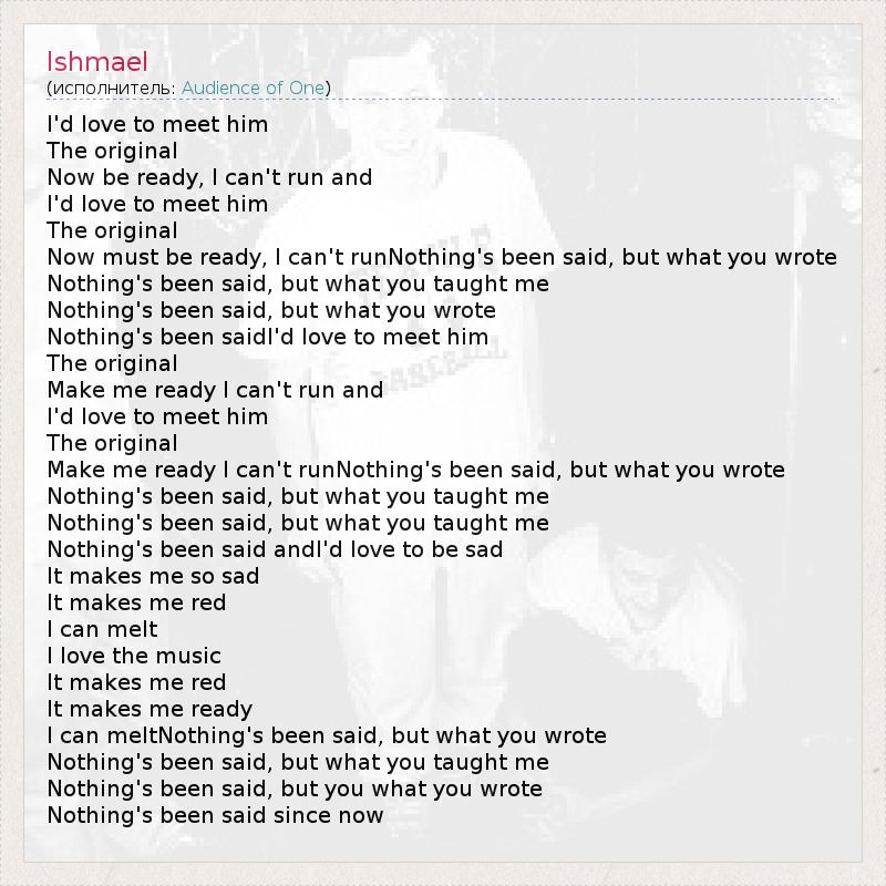 Это интересно:Audience Of One - группа, существовавшая в конце девяностых годов, где играл, ещё будучи тинейджером, Энтони Грин (Anthony Green) (побывавший вокалистом Saosin в 2003 году и на данный момент - вокалист Circa Survive). Коллектив был основан в 1997 году в Дойлстаун, штат Пенсильвания. Группа выпустила их единственный альбом “I Remember When This All Meant Something” на локальном... продолжение