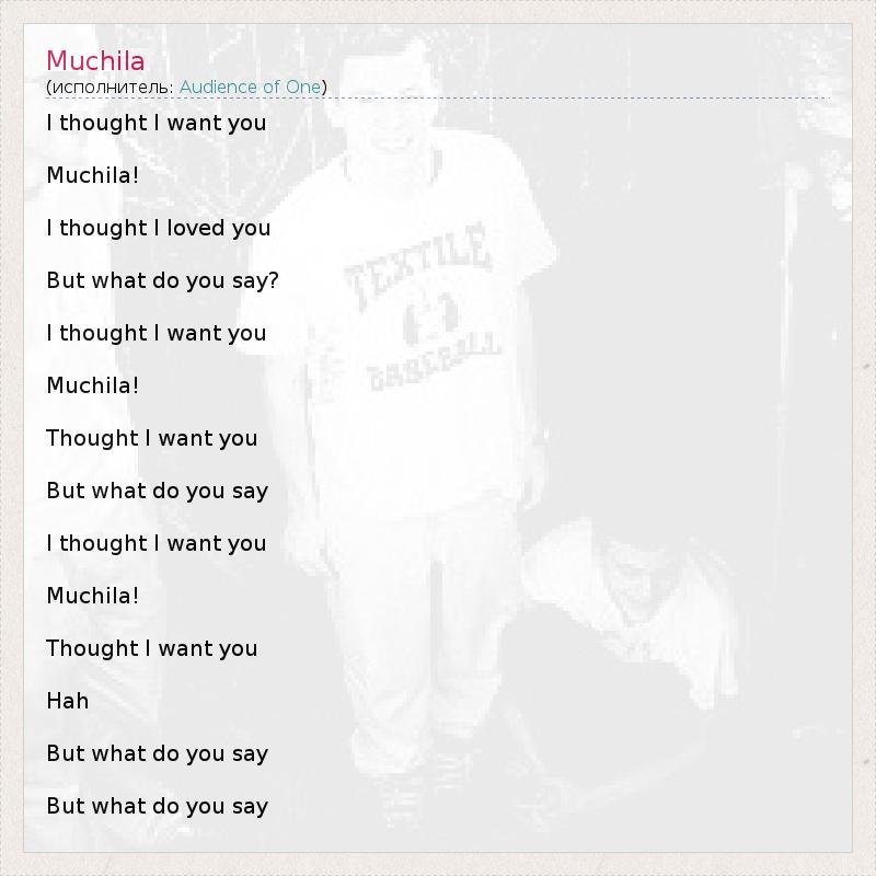 А как ты думаешь, о чем песня "Muchila" ?