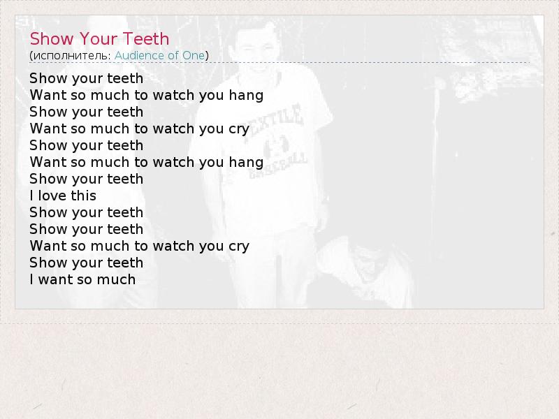 А как ты думаешь, о чем песня "Show Your Teeth" ?