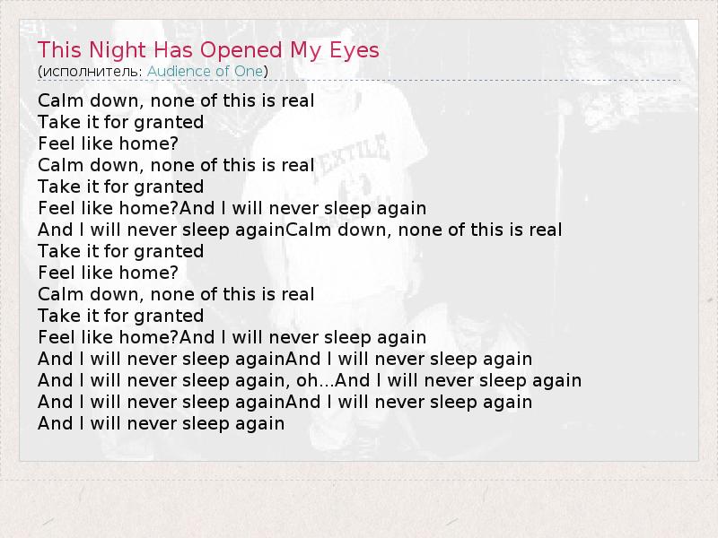 ГлавнаяИсполнителиAudience of OneThis Night Has Opened My Eyes