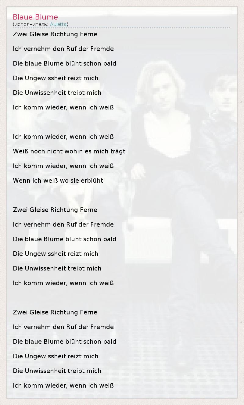 А как ты думаешь, о чем песня "Blaue Blume" ?
