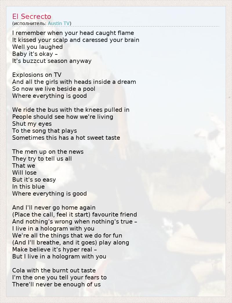 А как ты думаешь, о чем песня "El Secrecto" ?