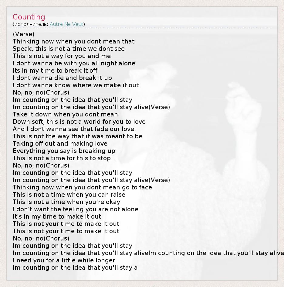 Im counting on the idea that you'll stay aliveIm counting on the idea that you'll stay alive