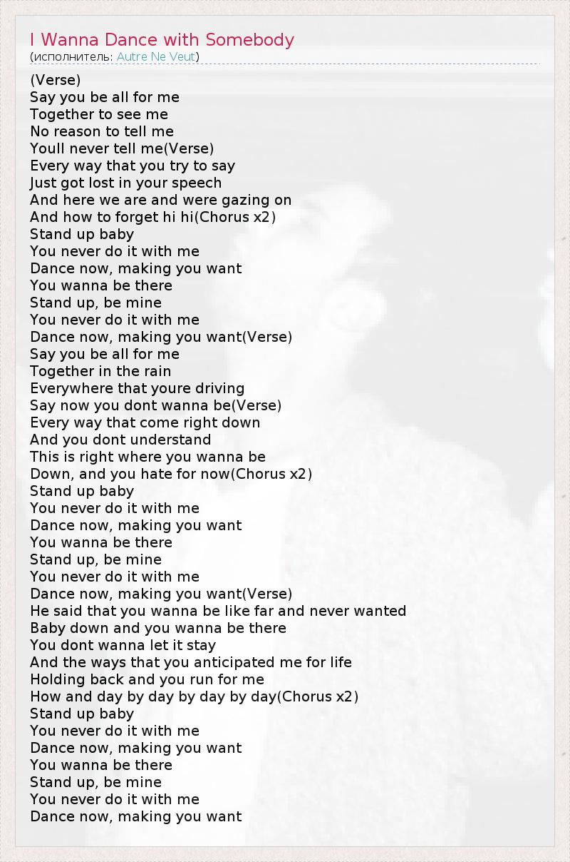 ГлавнаяИсполнителиAutre Ne VeutI Wanna Dance with Somebody