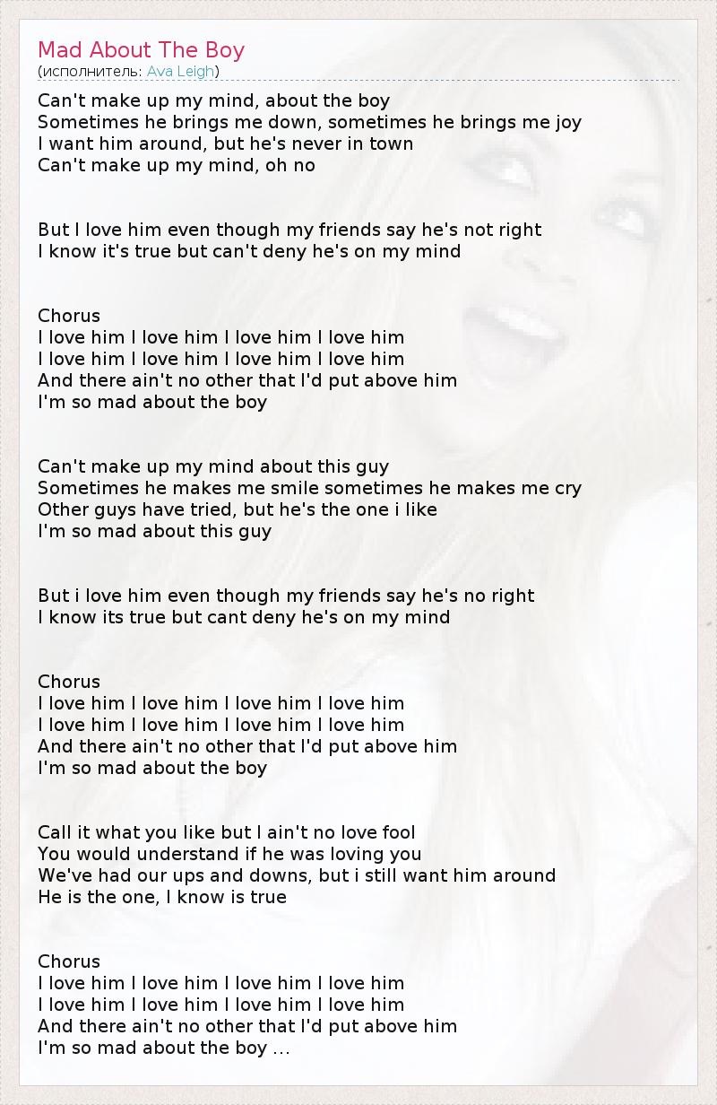 А как ты думаешь, о чем песня "Mad About The Boy" ?