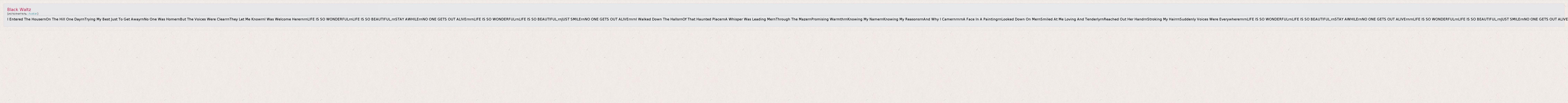I Entered The HousernOn The Hill One DayrnTrying My Best Just To Get AwayrnNo One Was HomernBut The Voices Were ClearrnThey Let Me KnowrnI Was Welcome HerernrnLIFE IS SO WONDERFULrnLIFE IS SO BEAUTIFUL,rnSTAY AWHILErnNO ONE GETS OUT ALIVErnrnLIFE IS SO WONDERFULrnLIFE IS SO BEAUTIFUL,rnJUST SMILErnNO ONE GETS OUT ALIVErnrnI Walked Down The HallsrnOf That Haunted PlacernA Whisper Was Leading MernThrough The MazernPromising WarmthrnKnowing My NamernKnowing My ReasonsrnAnd Why I CamernrnrnA Face In A PaintingrnLooked Down On MernSmiled At Me Loving And TenderlyrnReached Out Her HandrnStroking My HairrnSuddenly Voices Were EverywherernrnLIFE IS SO WONDERFULrnLIFE IS SO BEAUTIFUL,rnSTAY AWHILErnNO ONE GETS OUT ALIVErnrnLIFE IS SO WONDERFULrnLIFE IS SO BEAUTIFUL,rnJUST SMILErnNO ONE GETS OUT ALIVE
