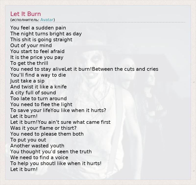А как ты думаешь, о чем песня "Let It Burn" ?