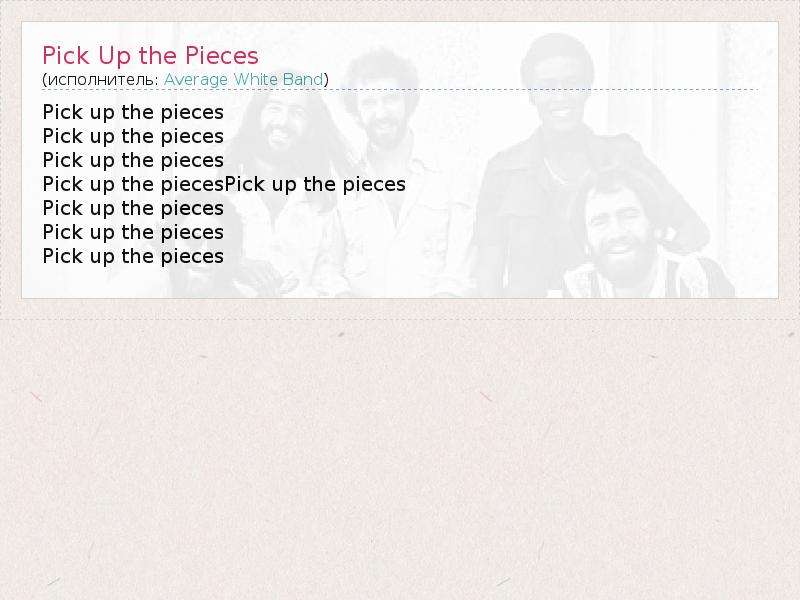 А как ты думаешь, о чем песня "Pick Up the Pieces" ?