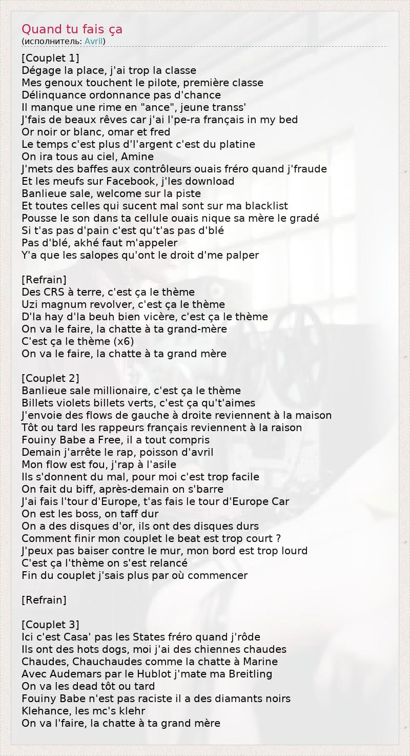 А как ты думаешь, о чем песня "Quand tu fais ça" ?