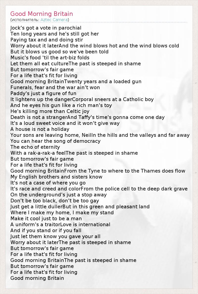 А как ты думаешь, о чем песня "Good Morning Britain" ?