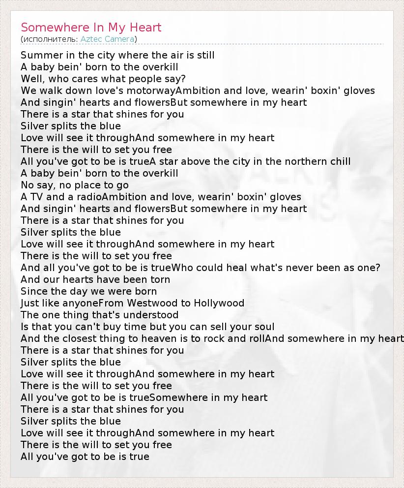 А как ты думаешь, о чем песня "Somewhere In My Heart" ?