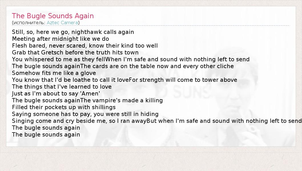 А как ты думаешь, о чем песня "The Bugle Sounds Again" ?