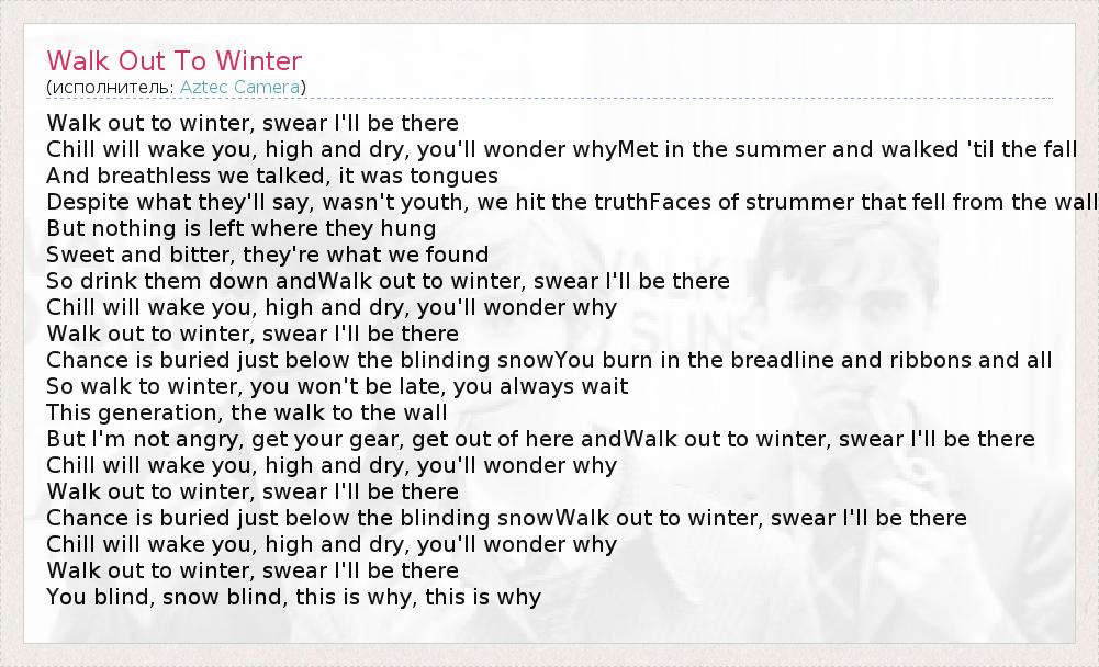 А как ты думаешь, о чем песня "Walk Out To Winter" ?