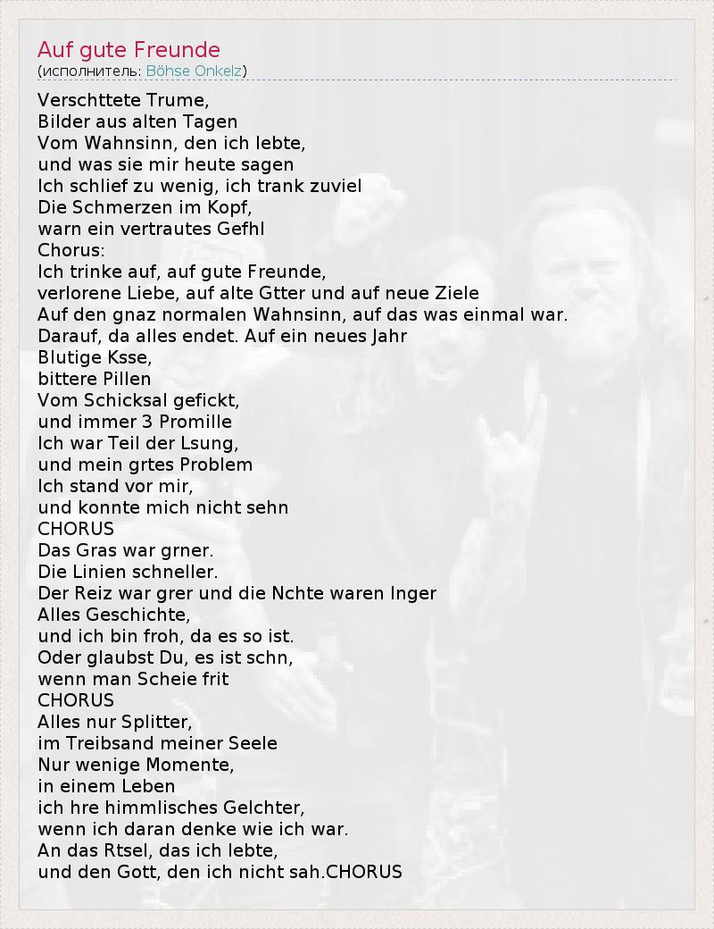 А как ты думаешь, о чем песня "Auf gute Freunde" ?