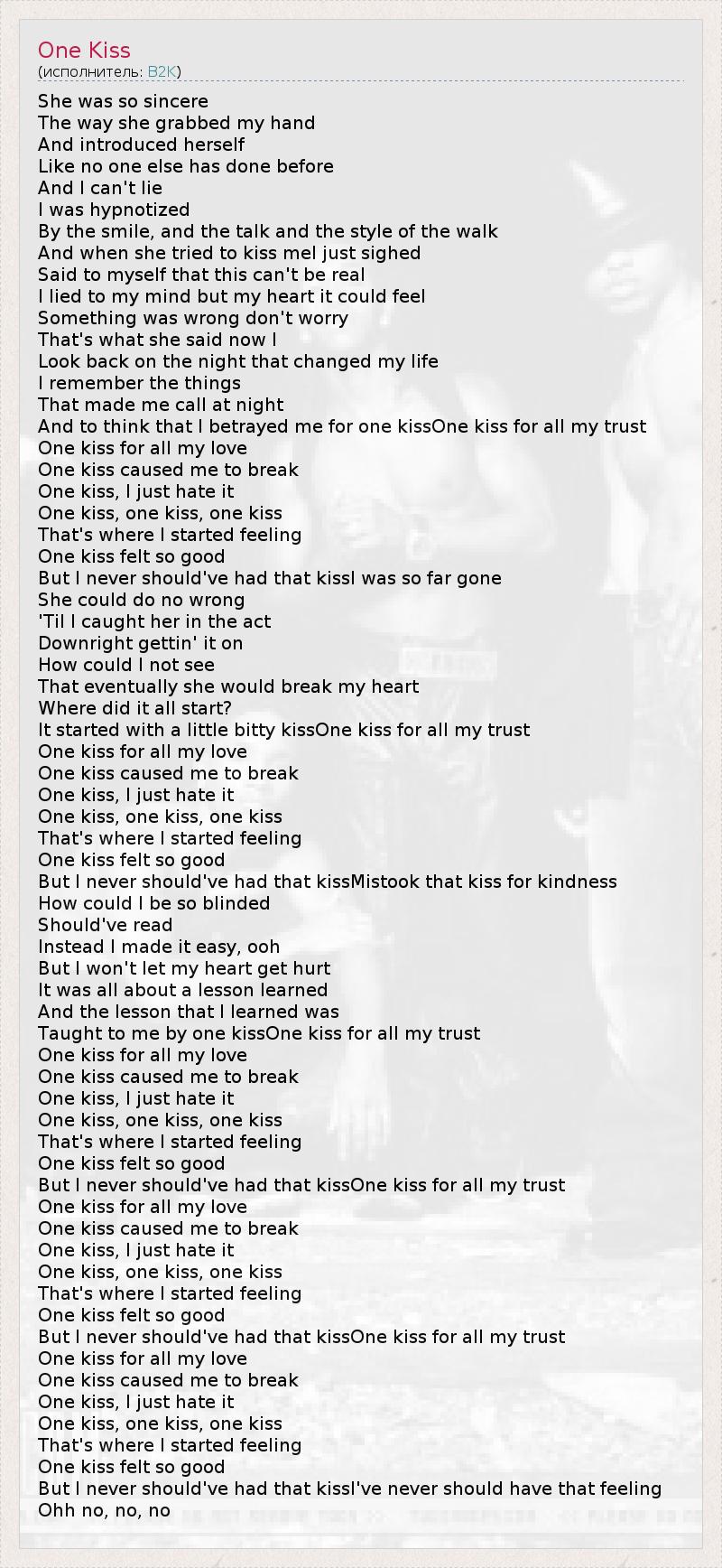 But I never should've had that kissOne kiss for all my trust
