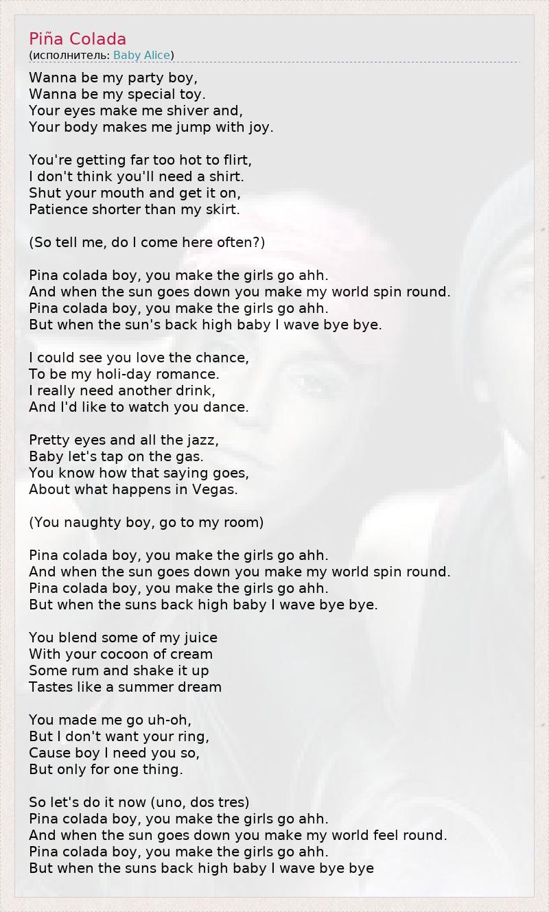 Pina colada boy, you make the girls go ahh.