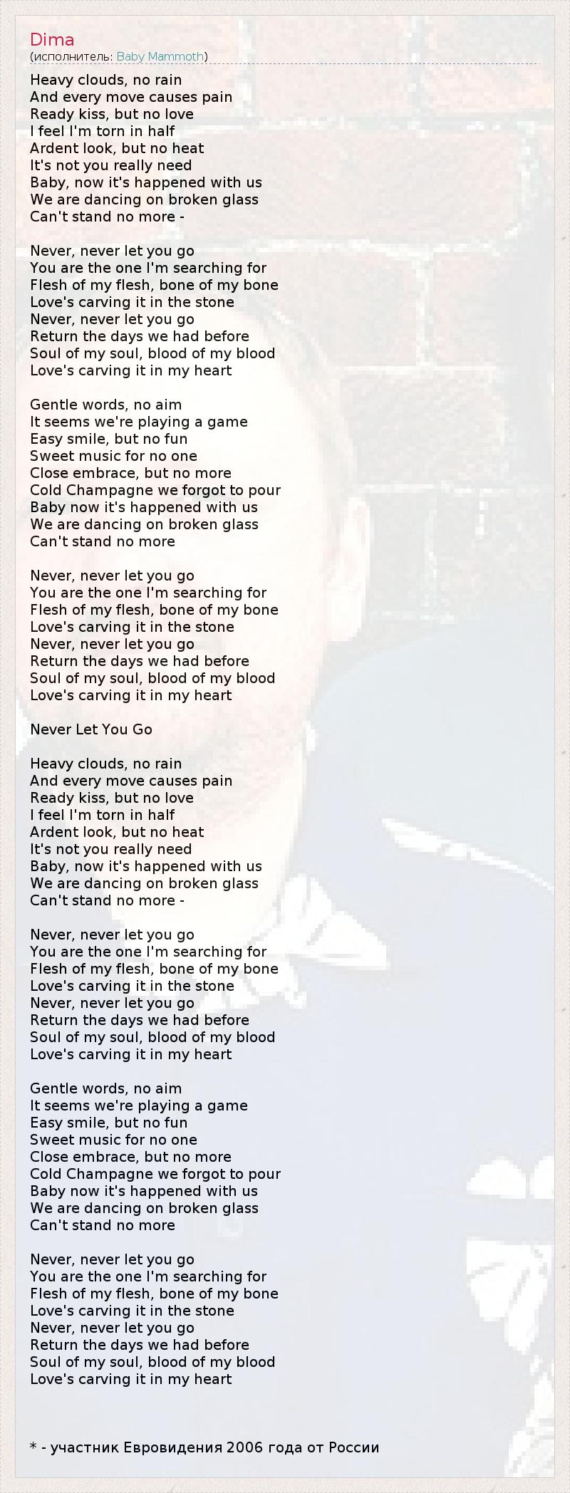 Никогда не отпущу (перевод Алеси Сидненко из Москвы)