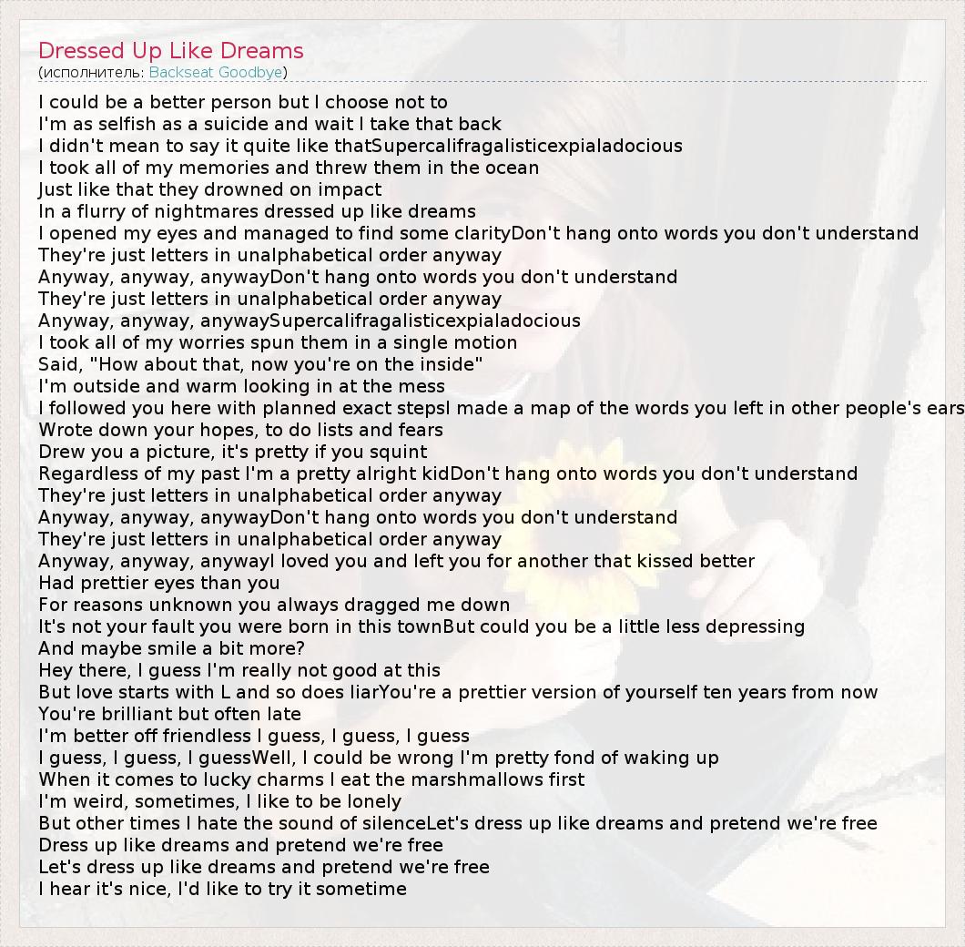 А как ты думаешь, о чем песня "Dressed Up Like Dreams" ?