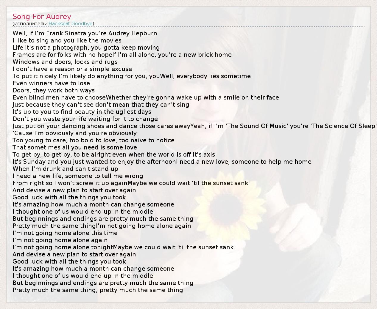 А как ты думаешь, о чем песня "Song For Audrey" ?