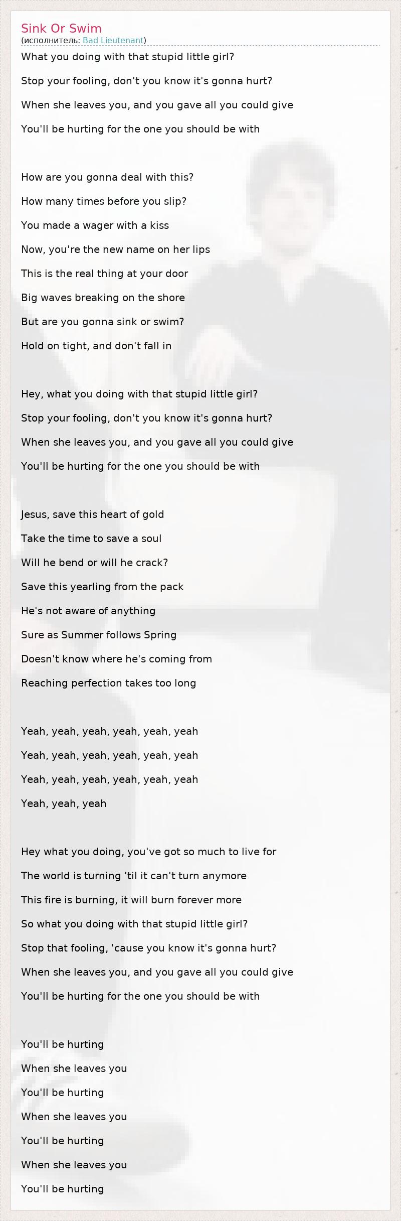 А как ты думаешь, о чем песня "Sink Or Swim" ?