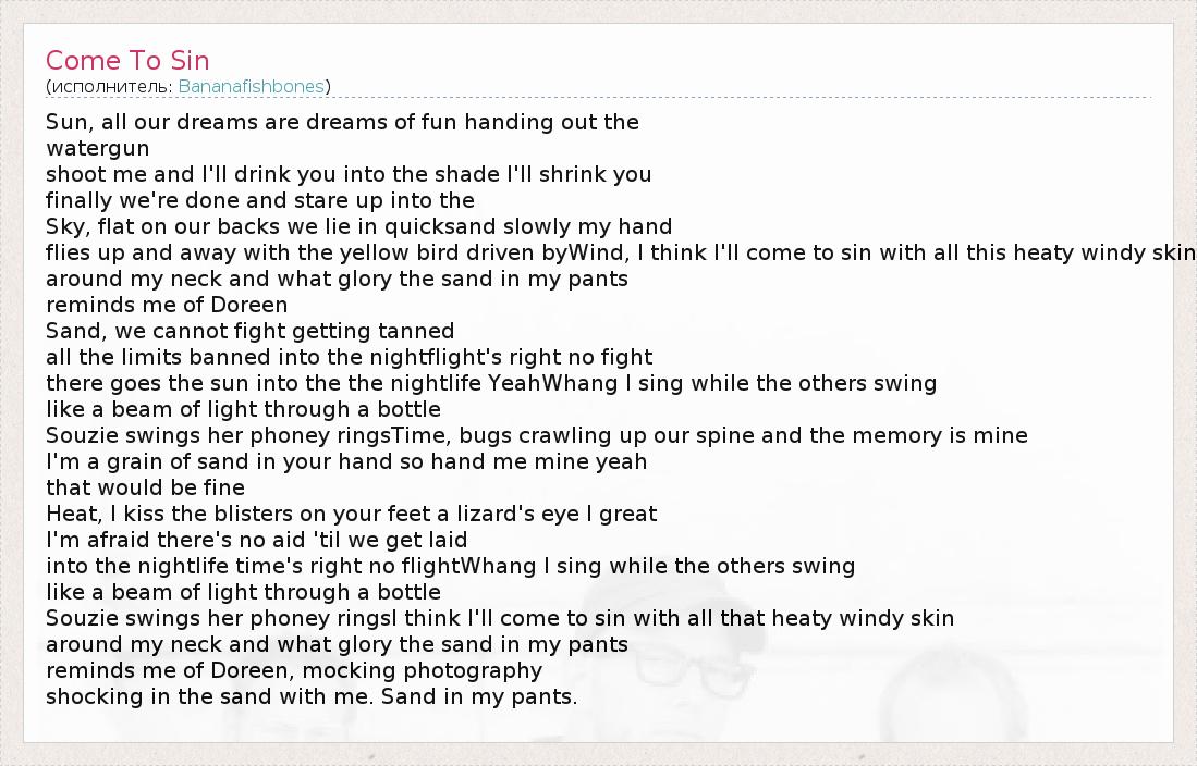 А как ты думаешь, о чем песня "Come To Sin" ?