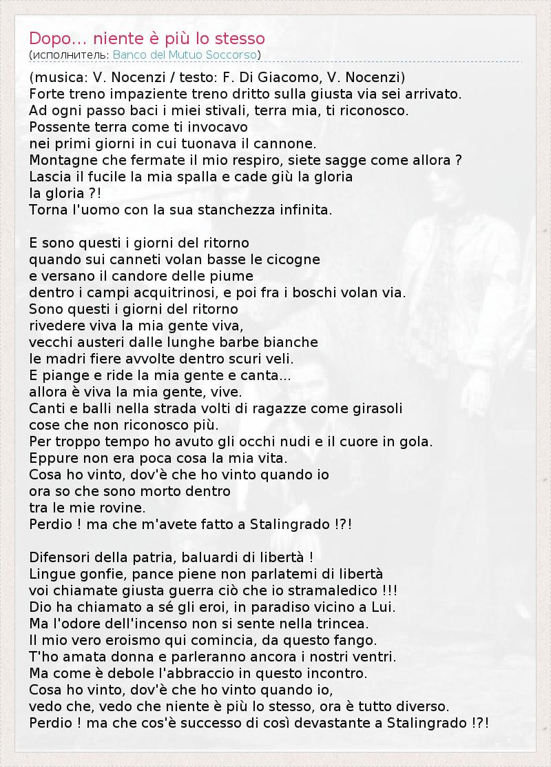 А как ты думаешь, о чем песня "Dopo... niente è più lo stesso" ?