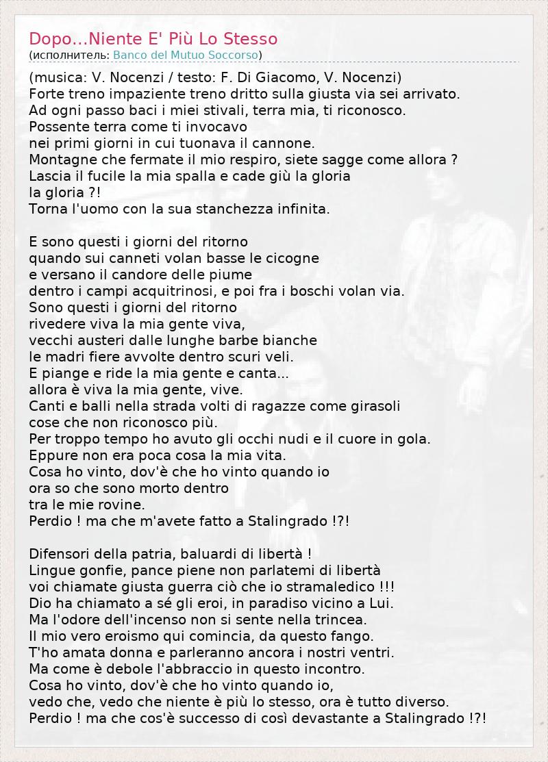 А как ты думаешь, о чем песня "Dopo...Niente E' Più Lo Stesso" ?