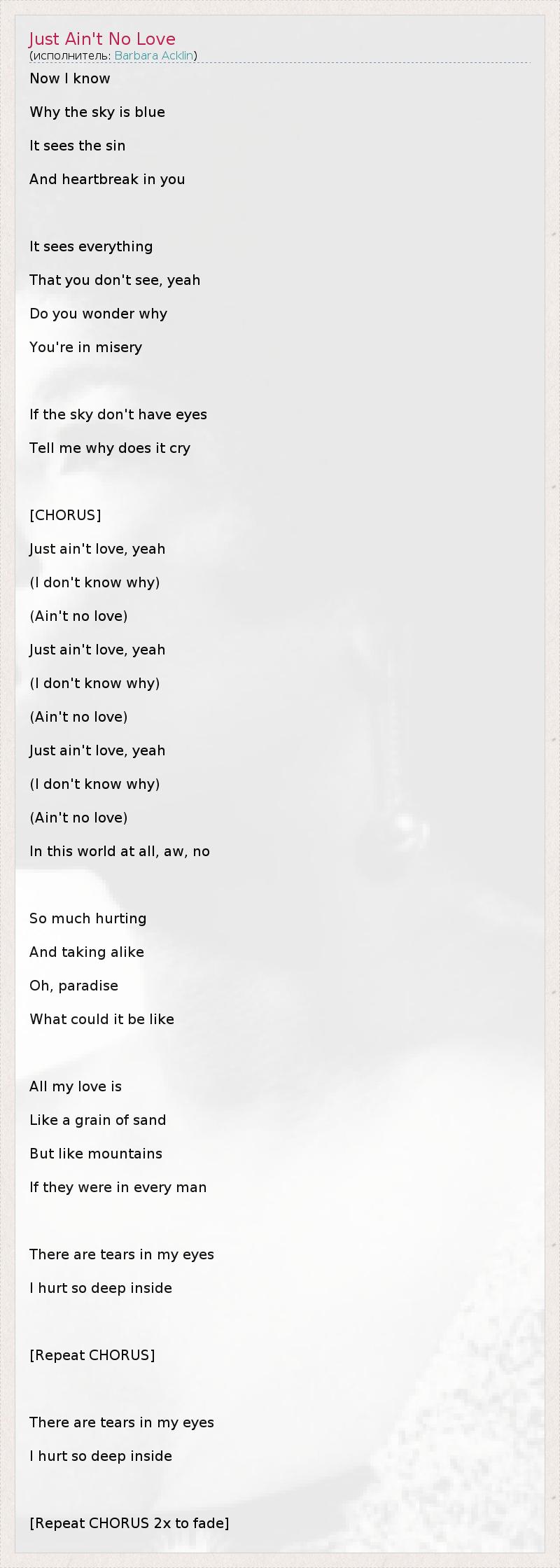 А как ты думаешь, о чем песня "Just Ain't No Love" ?