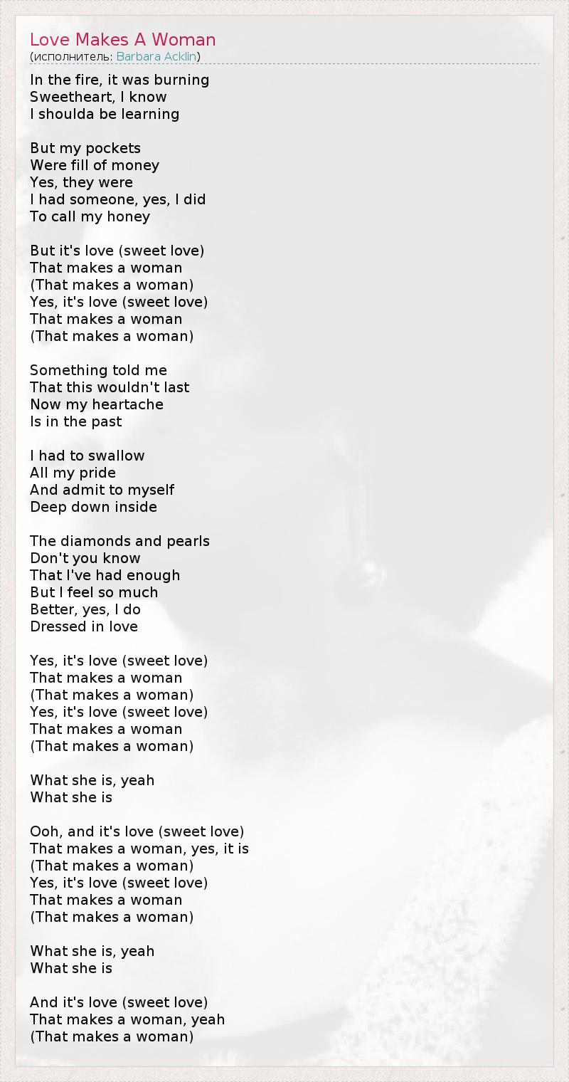 А как ты думаешь, о чем песня "Love Makes A Woman" ?