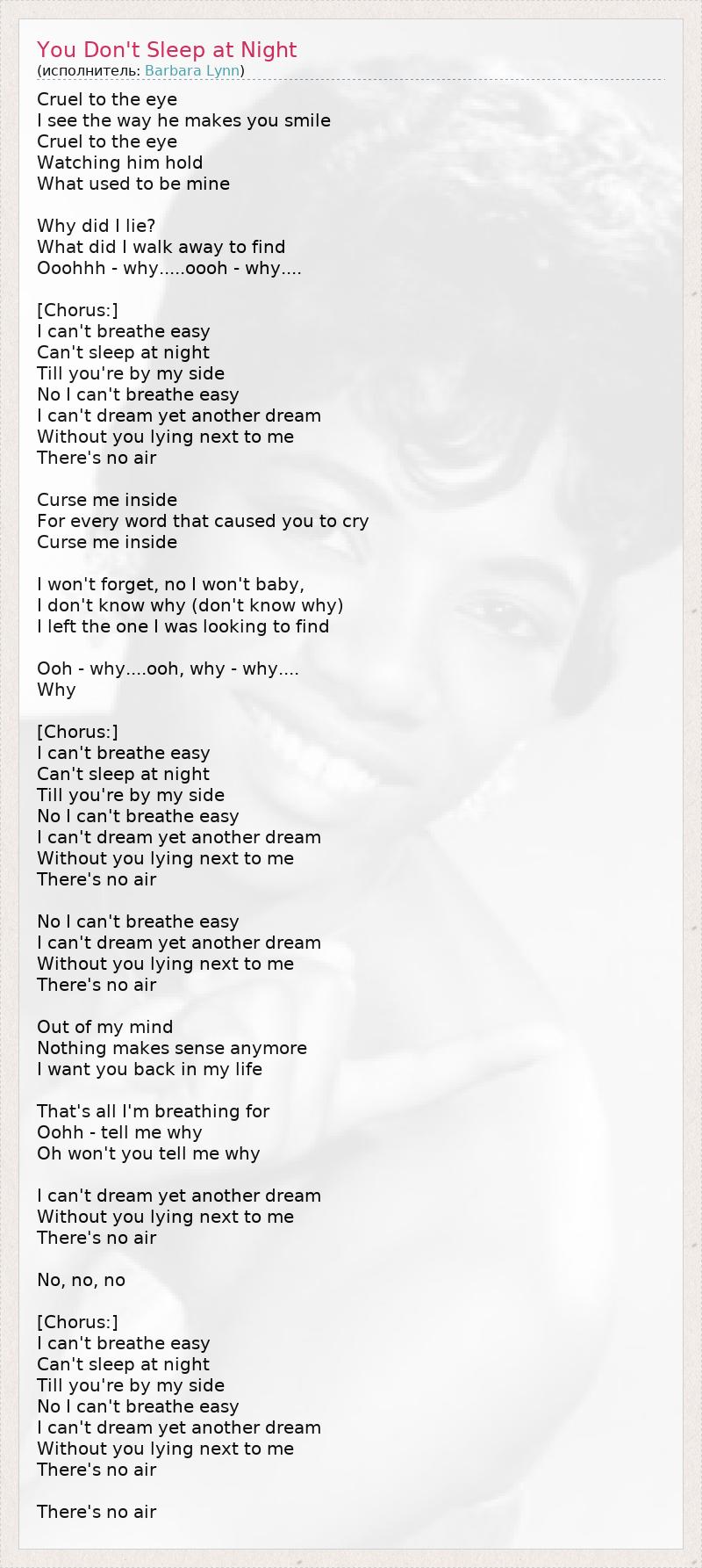 ГлавнаяИсполнителиBarbara LynnYou Don't Sleep at Night
