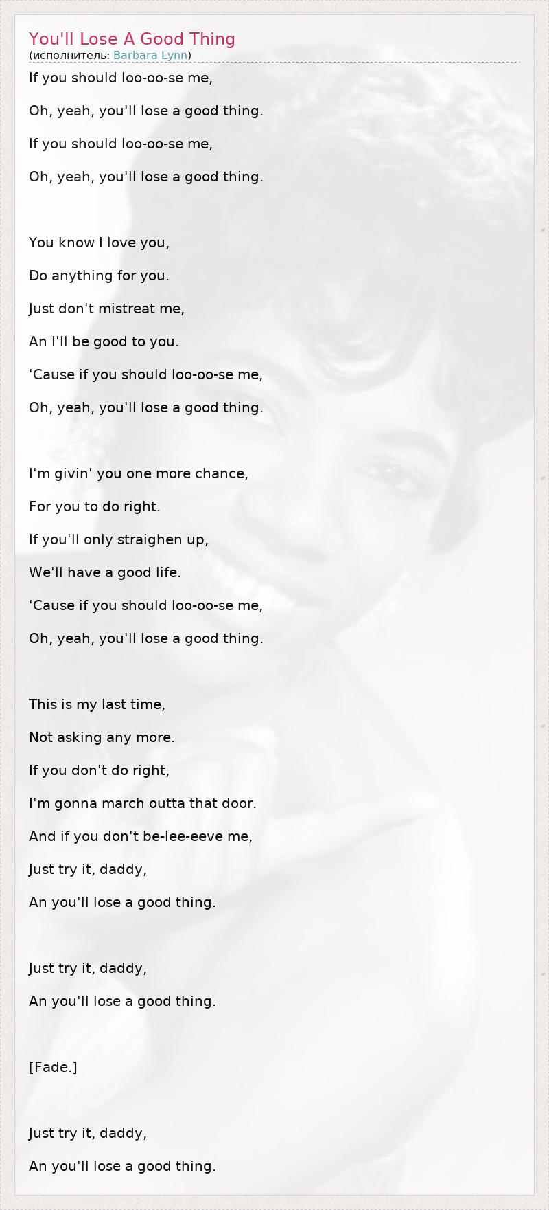 А как ты думаешь, о чем песня "You'll Lose A Good Thing" ?