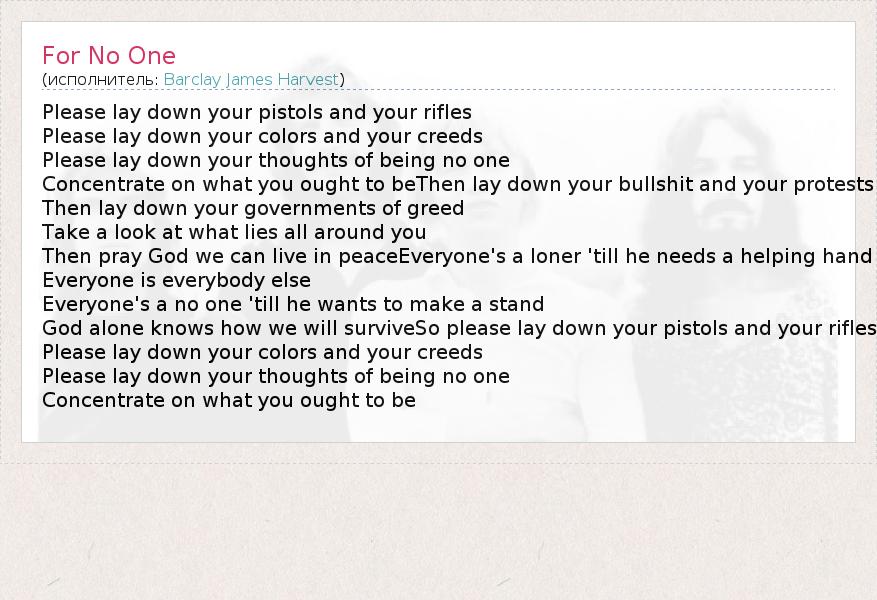God alone knows how we will surviveSo please lay down your pistols and your rifles