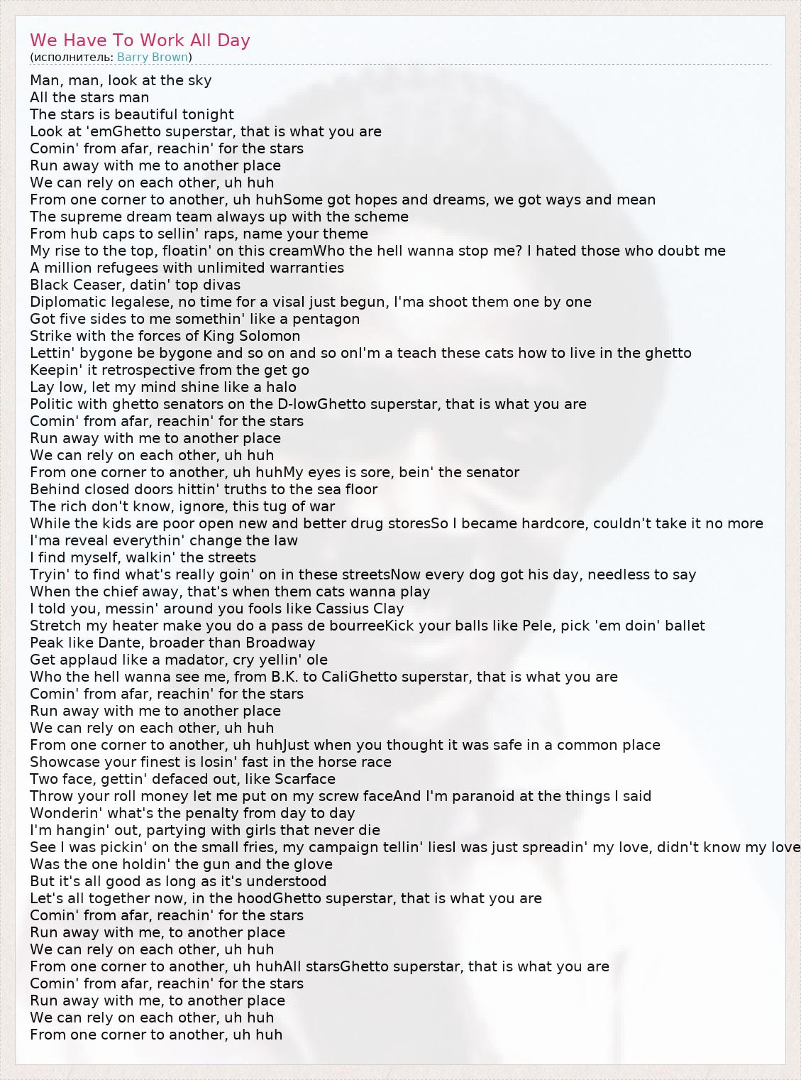 А как ты думаешь, о чем песня "We Have To Work All Day" ?