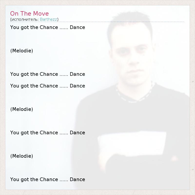 You got the Chance ...... Dance (Melodie) You got the Chance ...... Dance You got the Chance ...... Dance (Melodie) You got the Chance ...... Dance (Melodie) You got the Chance ...... Dance
