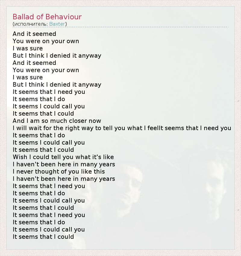 А как ты думаешь, о чем песня "Ballad of Behaviour" ?
