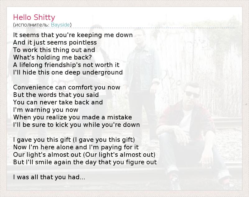 А как ты думаешь, о чем песня "Hello Shitty" ?