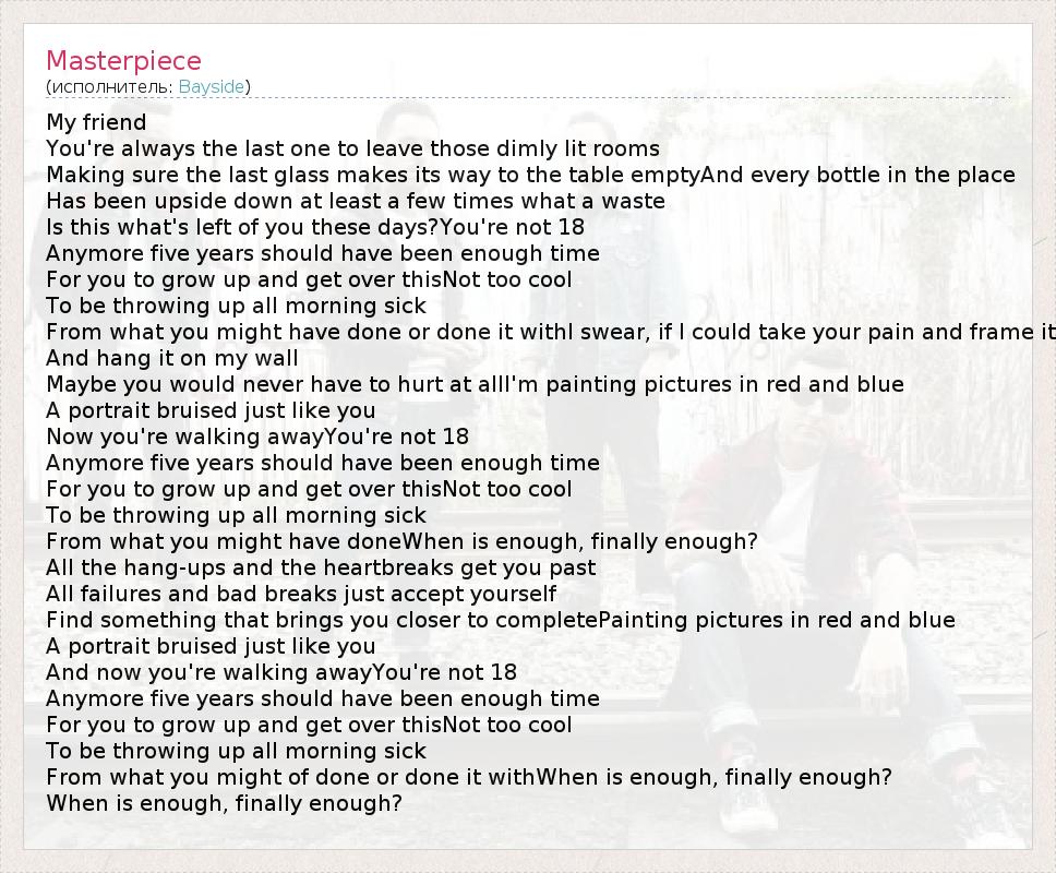 А как ты думаешь, о чем песня "Masterpiece" ?