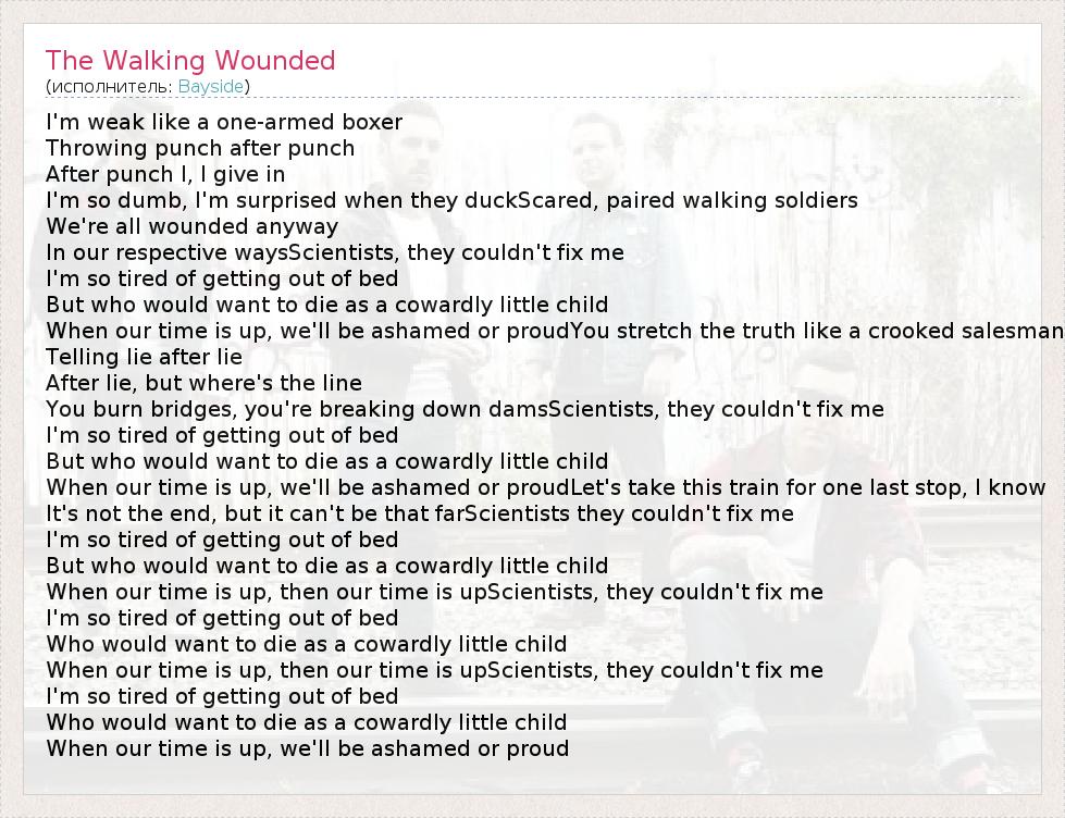 А как ты думаешь, о чем песня "The Walking Wounded" ?