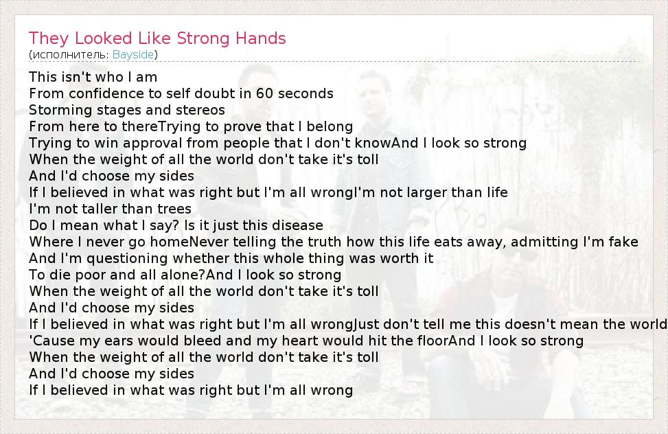 А как ты думаешь, о чем песня "They Looked Like Strong Hands" ?