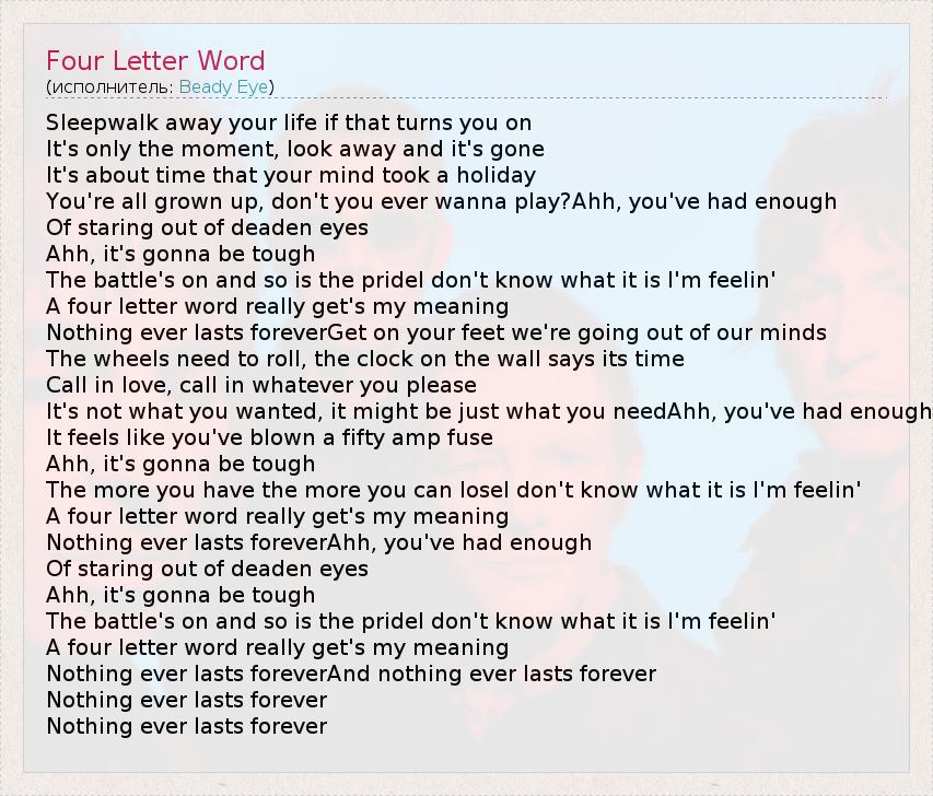 А как ты думаешь, о чем песня "Four Letter Word" ?