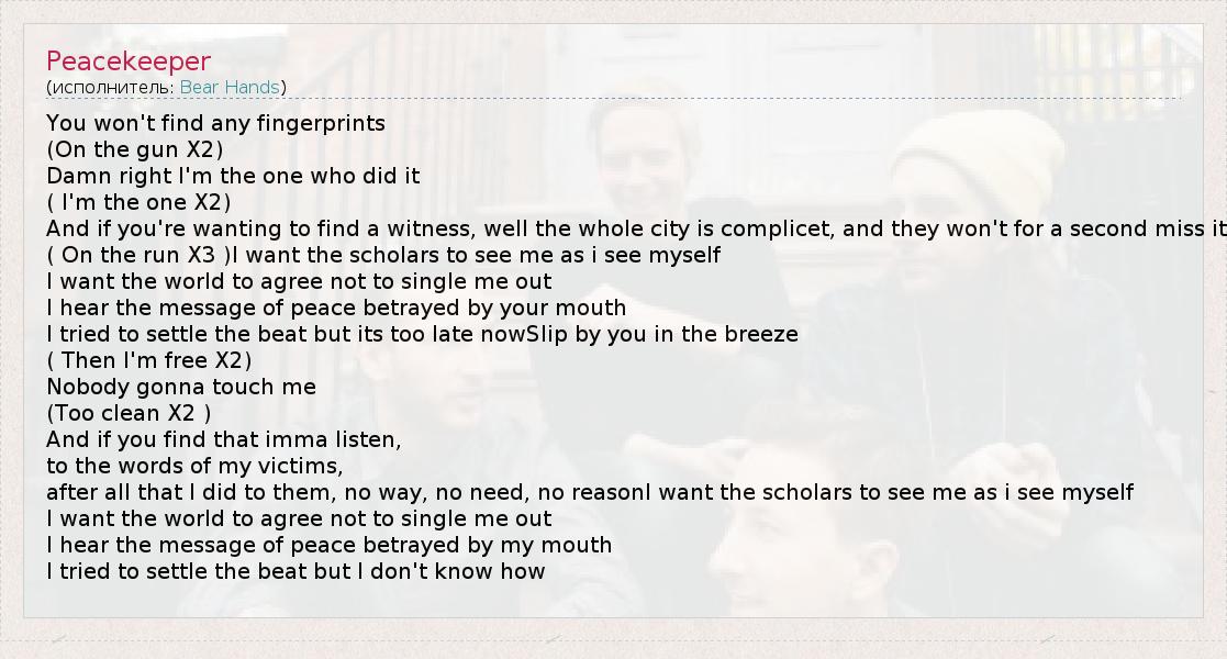 А как ты думаешь, о чем песня "Peacekeeper" ?