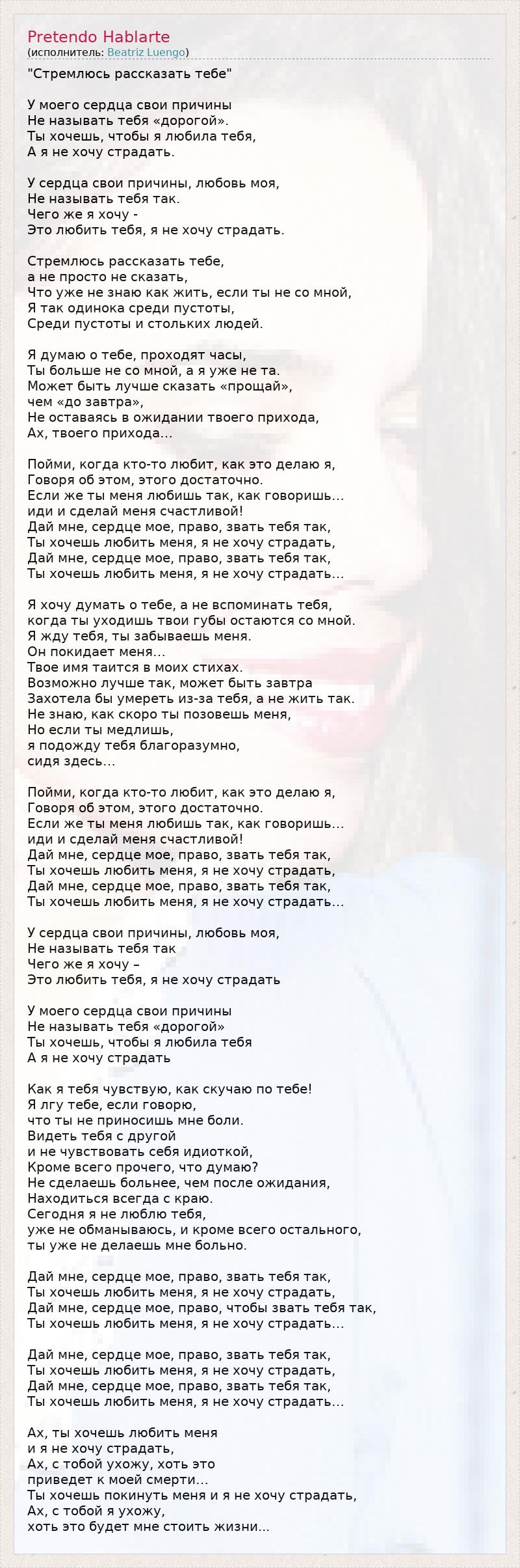 А как ты думаешь, о чем песня "Pretendo Hablarte" ?