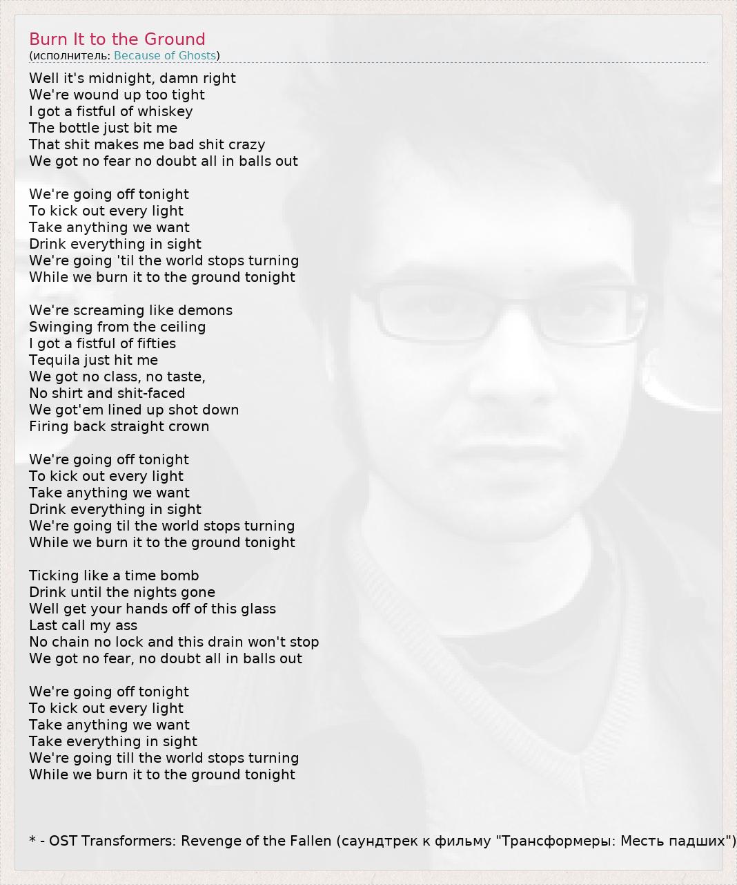 А как ты думаешь, о чем песня "Burn It to the Ground" ?