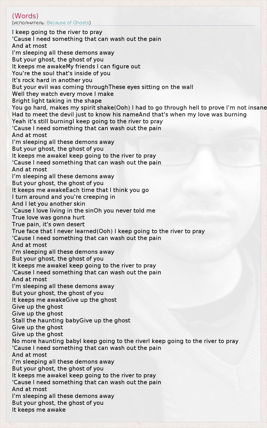 No more haunting babyI keep going to the riverI keep going to the river to pray