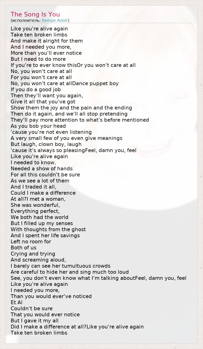 А как ты думаешь, о чем песня "The Song Is You" ?